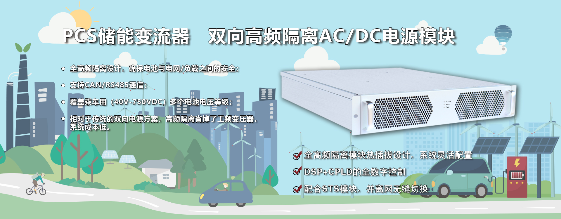 專為中小型工商業(yè)儲(chǔ)能系統(tǒng)量身打造的模塊化變流器產(chǎn)品,支持并網(wǎng)、離網(wǎng)運(yùn)行。該模塊支持雙向能量流動(dòng)、超寬范圍電池電壓,可與不同類型電池搭配使用,滿足不同應(yīng)用場(chǎng)景的需求